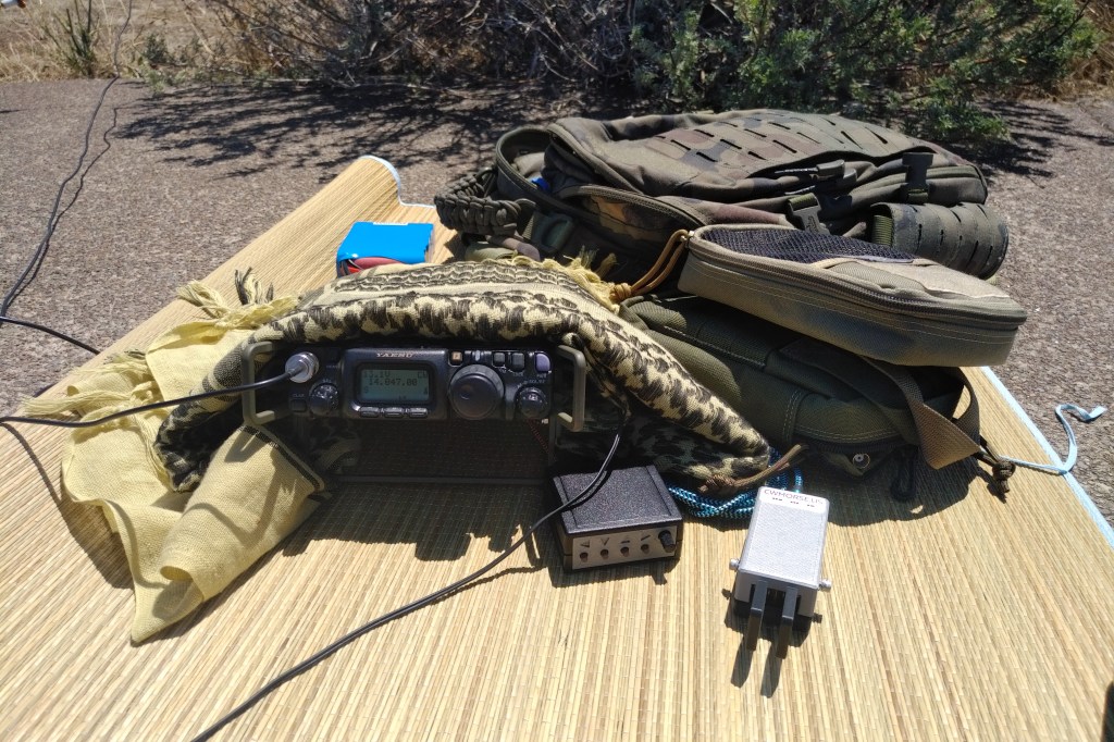 The FT-818 running QRP (5 watts not 6) brought in 7 contacts in fairly short order, but conditions changed and the qso rate slowed down considerably. The afternoon west wind and sun exposure really starts to wear on you, making the 20 minutes needed to get the last three contacts seem like forever.