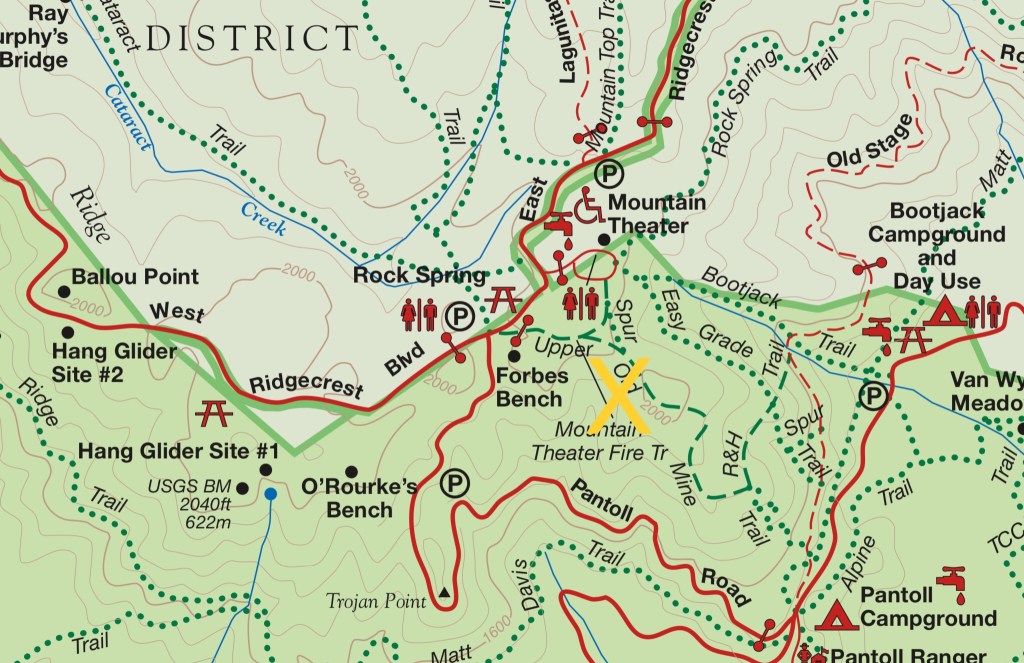 I popped the trunk, refilled my water bottle then loaded the radio gear into my pack and grabbed my One Tigris folding camp chair. We crossed Ridgecrest Boulevard and walked a few hundred yards up the fire road into Mount Tamalpais State Park land.
