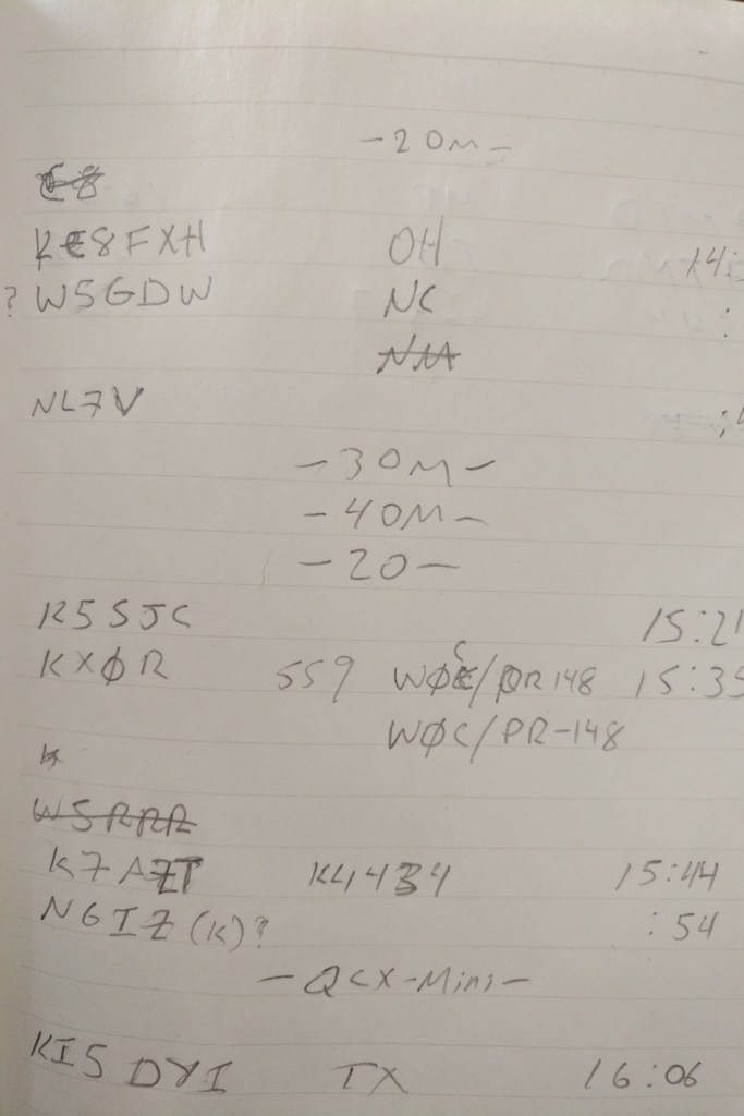 I started on 20 meters and worked a few stations. Then the band faded out, so I dropped down to 30 meters in search of more. Nothing there. How about 40 meters? Nope, nothing there either.