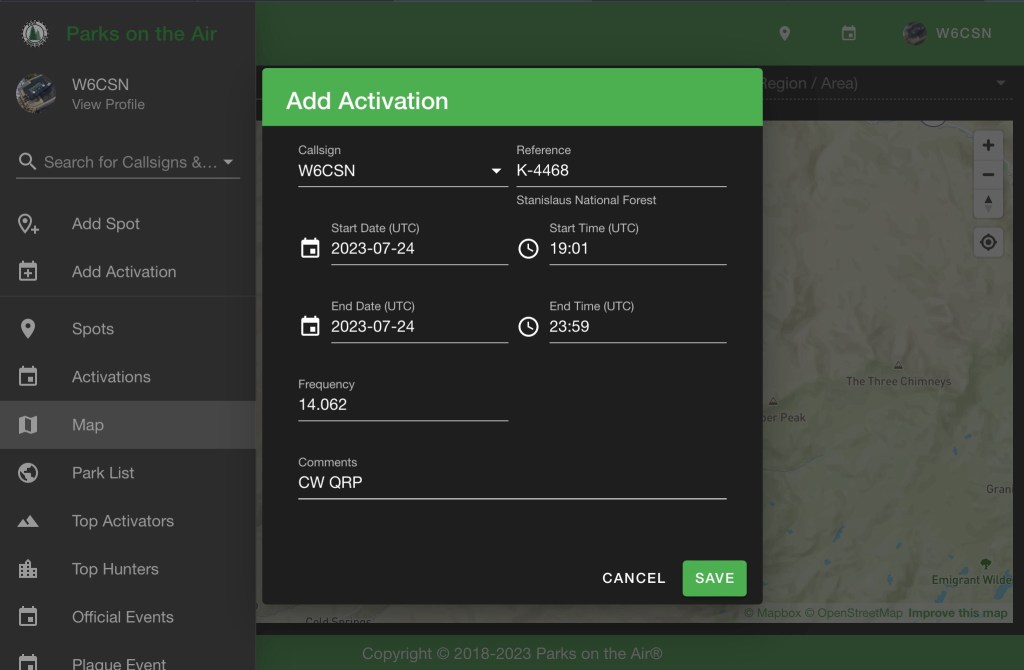 This gave me an idea, I could make the short drive from the cabin up to Calaveras Big Trees (K-1134) in the morning while everyone was sleeping in and try to get the activation done before heading to Lake Alpine. This way the family visit to Big Trees wouldn’t be interrupted by dad playing radio.