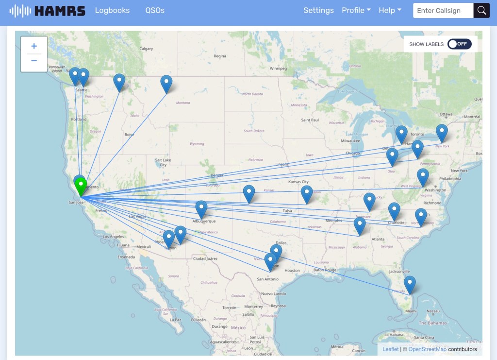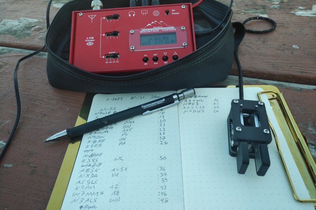 By the the time I called QRT I had 22 contacts in the log, mostly from the southern half of the U.S. with little forays into the PNW and eastern Great Lakes, and one local on ground wave.