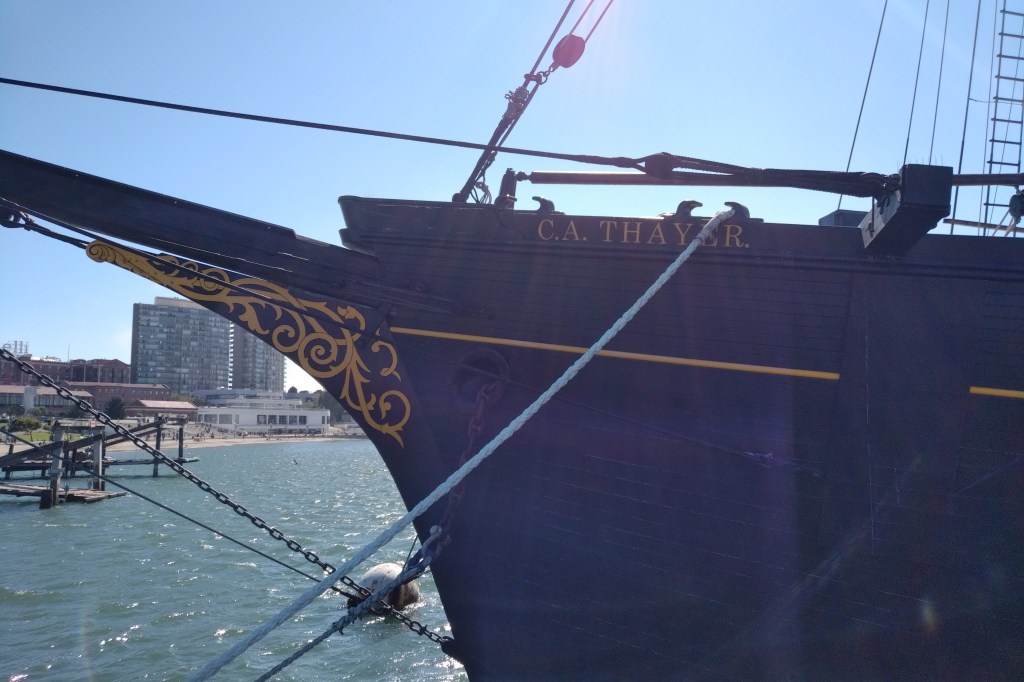 We wrapped up our tour of the vessels on the pier by exploring C.A. Thayer, a 219 foot long sailing schooner built in 1895 near Eureka, California to serve the coastal timber trade.