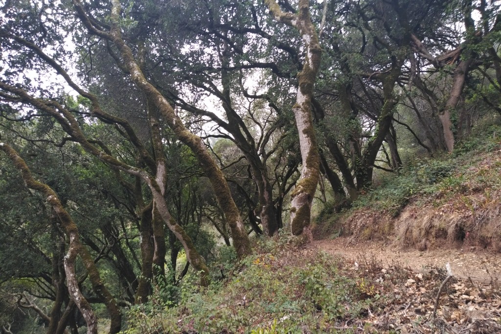 The Morning Sun trail climbs steeply on a series of switchbacks through a dry environment full of oak trees and plenty of poison oak.