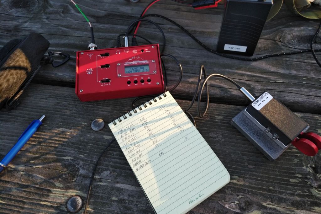 The MTR-4B showed an SWR reading of 1.5 to 1 and an output power between 3.5 and 4 watts, good enough! Using the message memory function on the Mountaintopper, I started calling “CQ POTA” while simultaneously preparing the logbook.