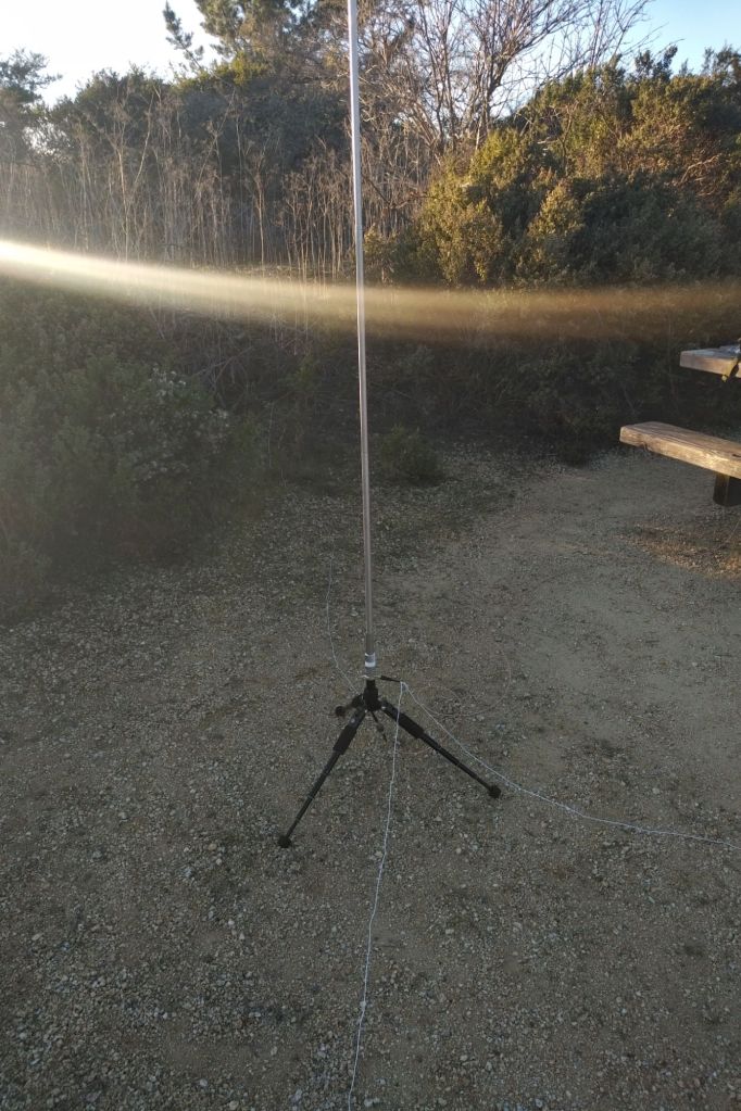 With time running short, I opted for the quick deployment of the Mountaintopper MTR-4B connected to a tripod mounted 20M quarter wave vertical telescoping whip. The FT-818 as well as EFHW and Spiderbeam mast were in the trunk of the car but that station takes a bit more time to setup up.